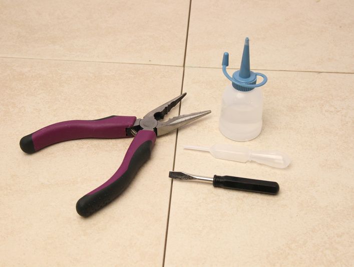 用意するものはマイナスドライバー、ペンチ、スポイト(ホームセンターなどにあるオイル用容器でも構いません)