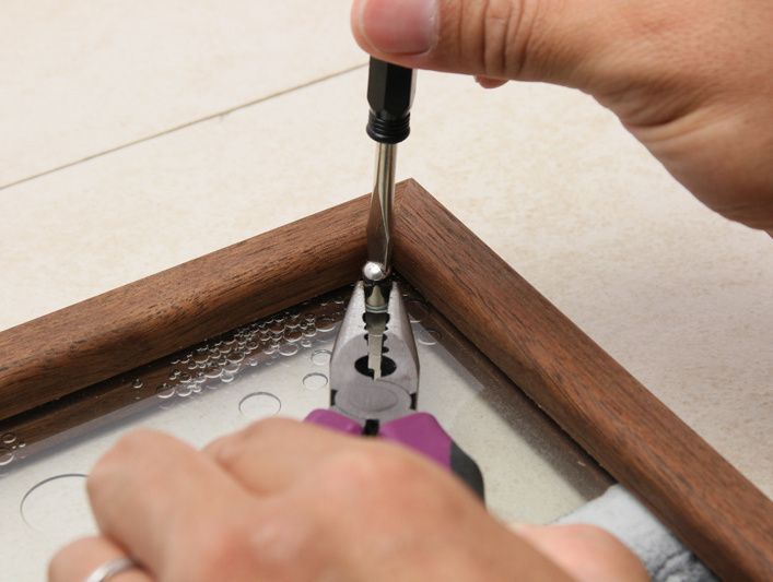 最後に、突起物の根元をおさえ、ネジを締めてください。